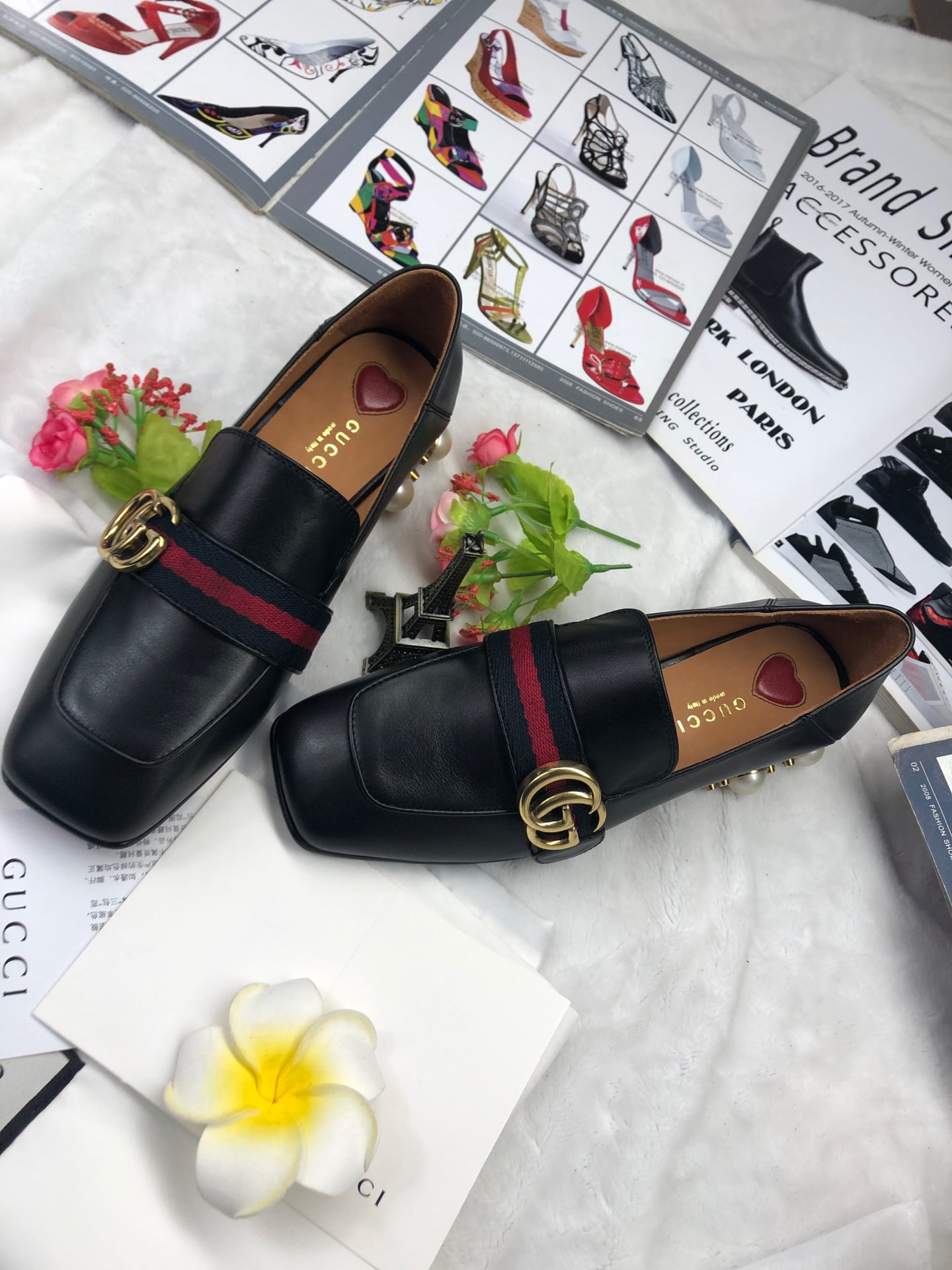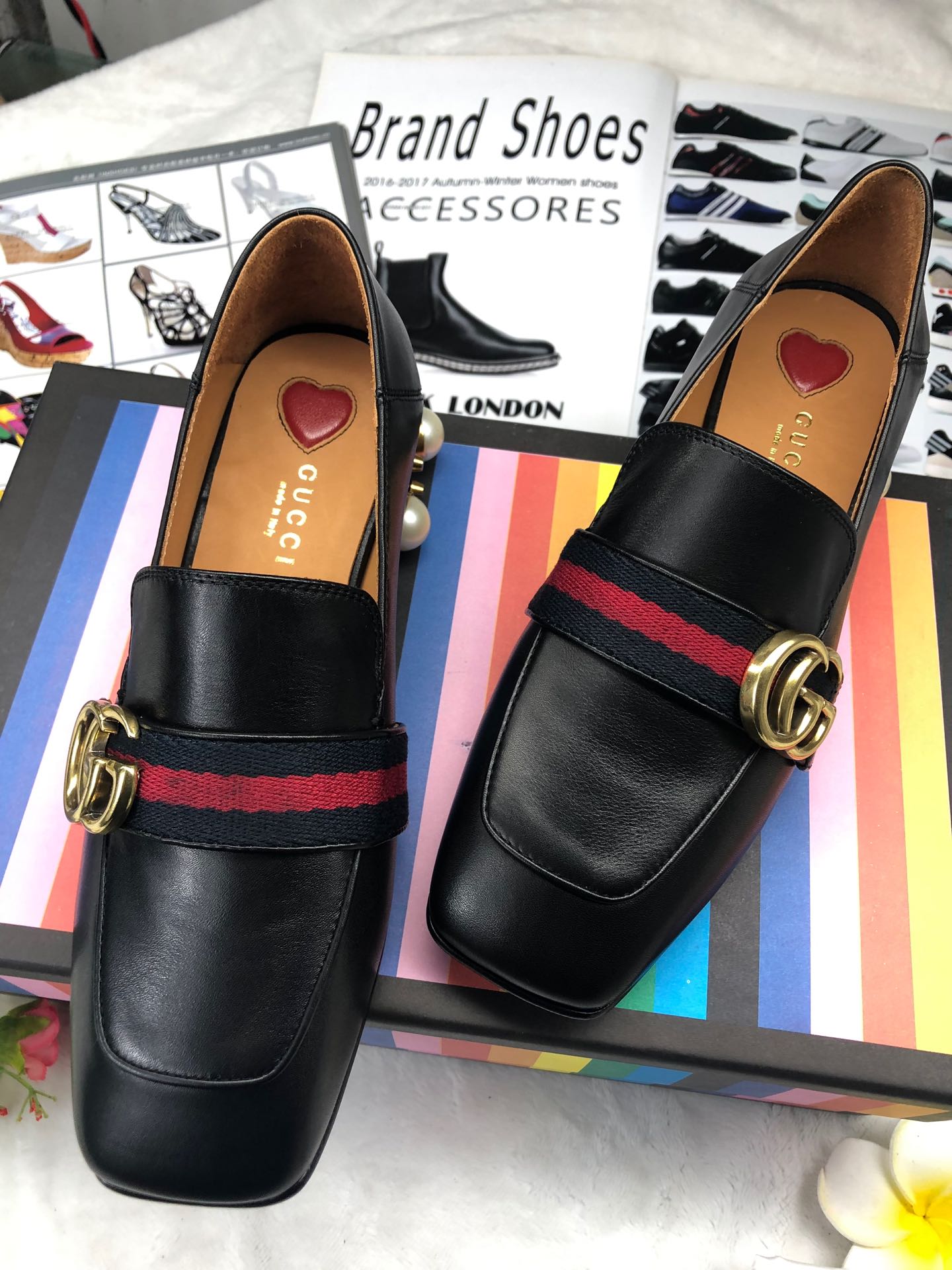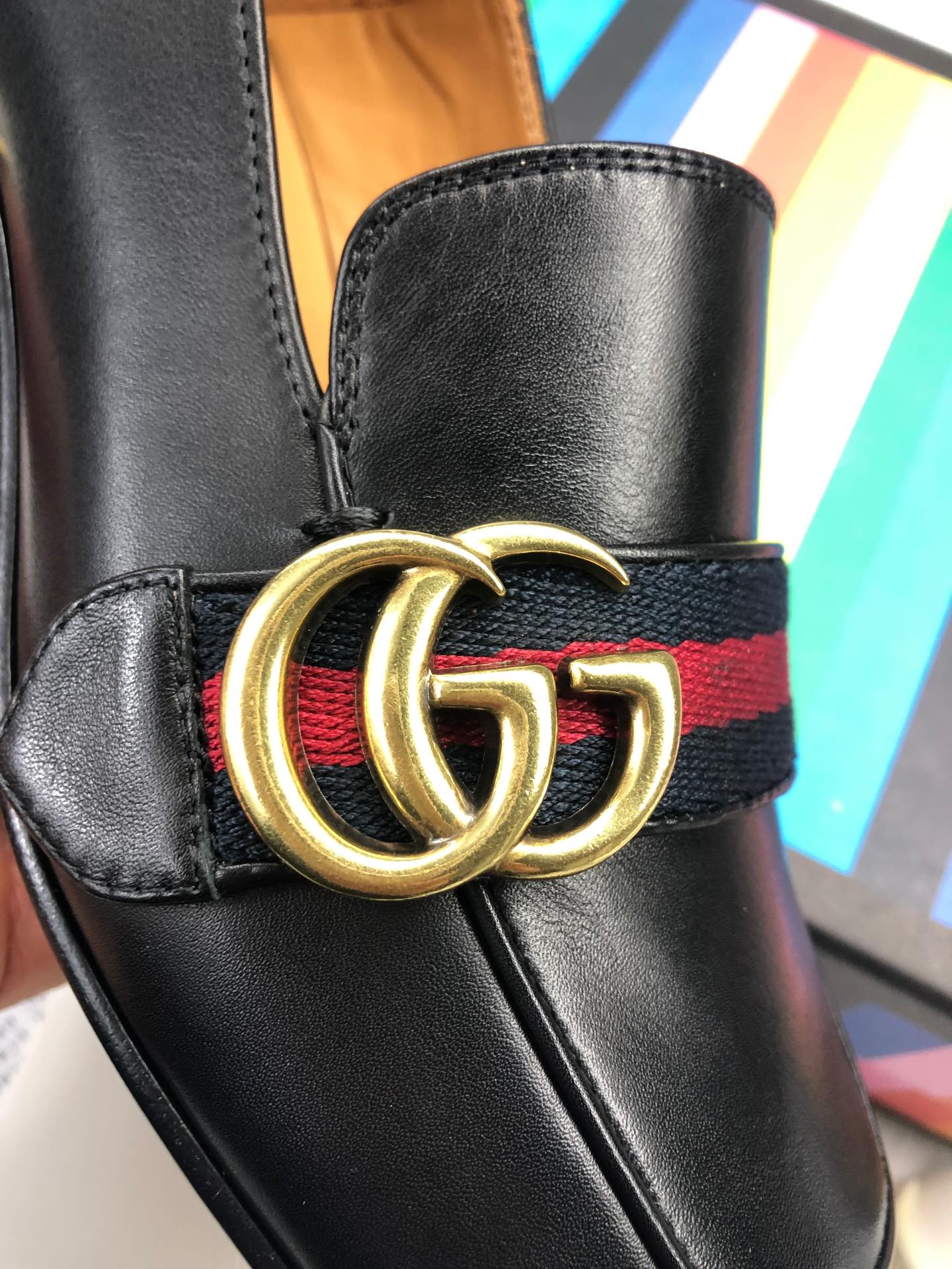 Gucci Retro square toe design calfskin shoes
