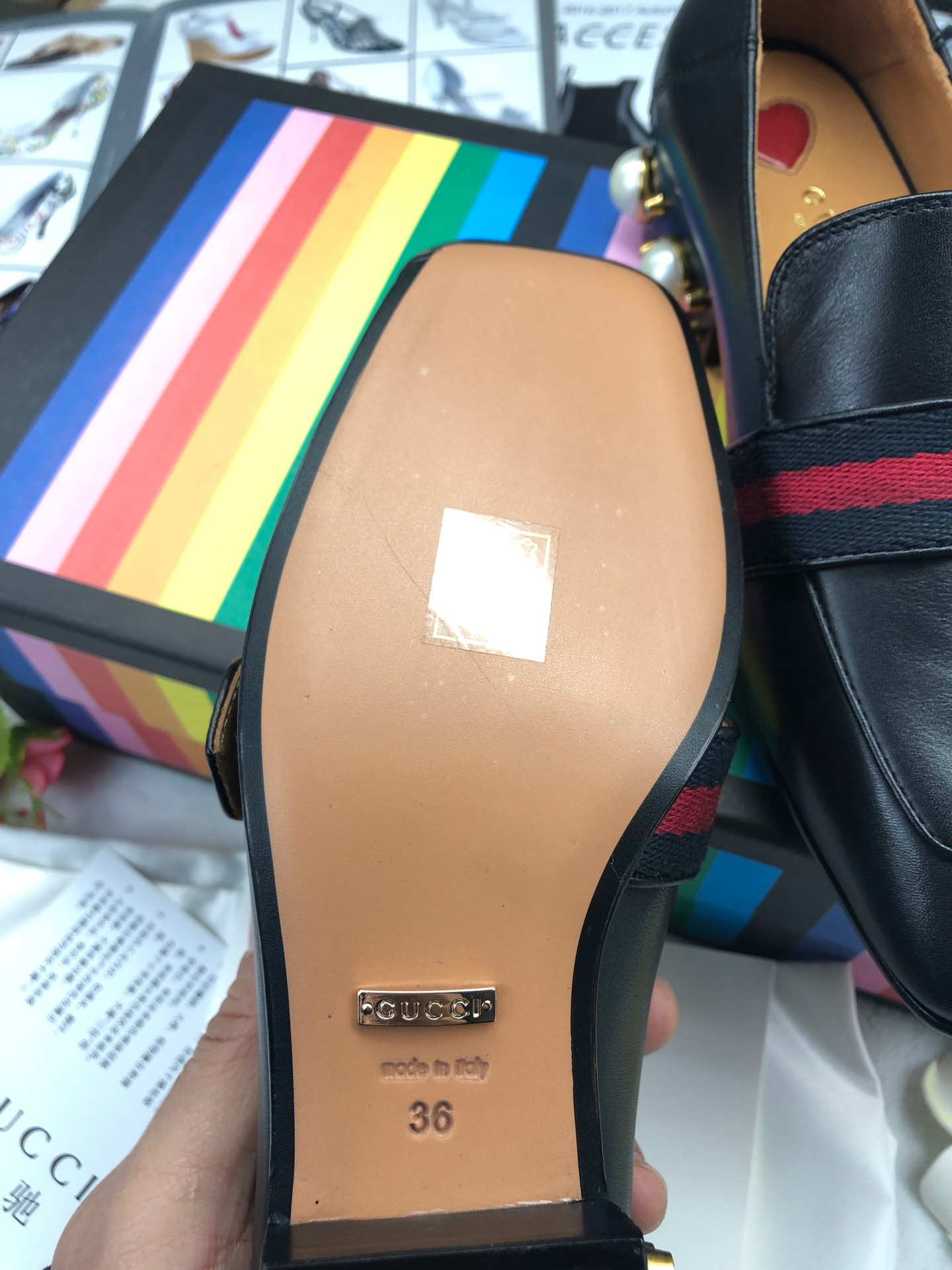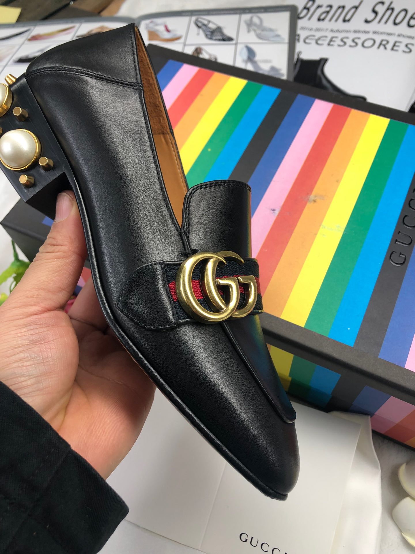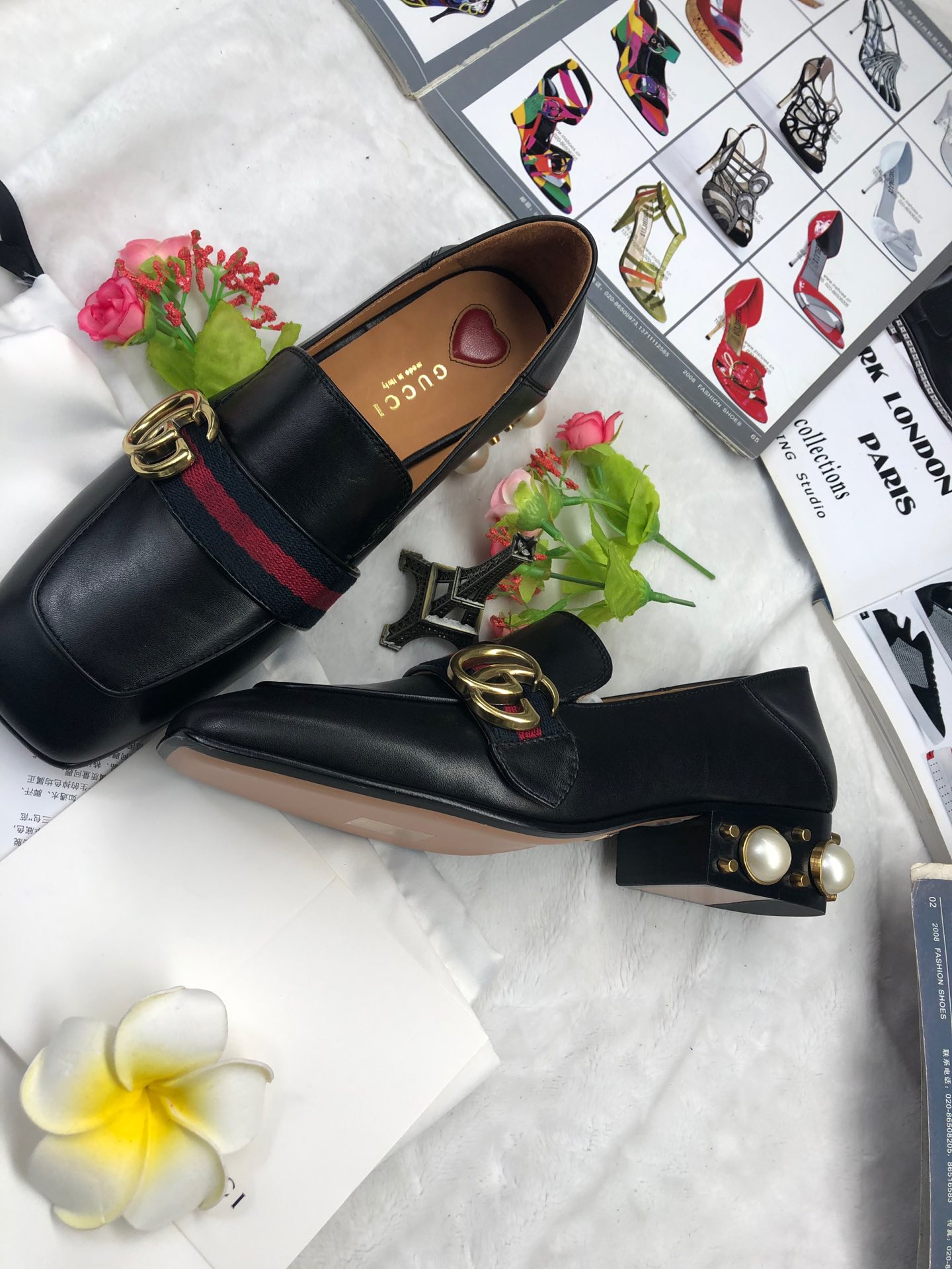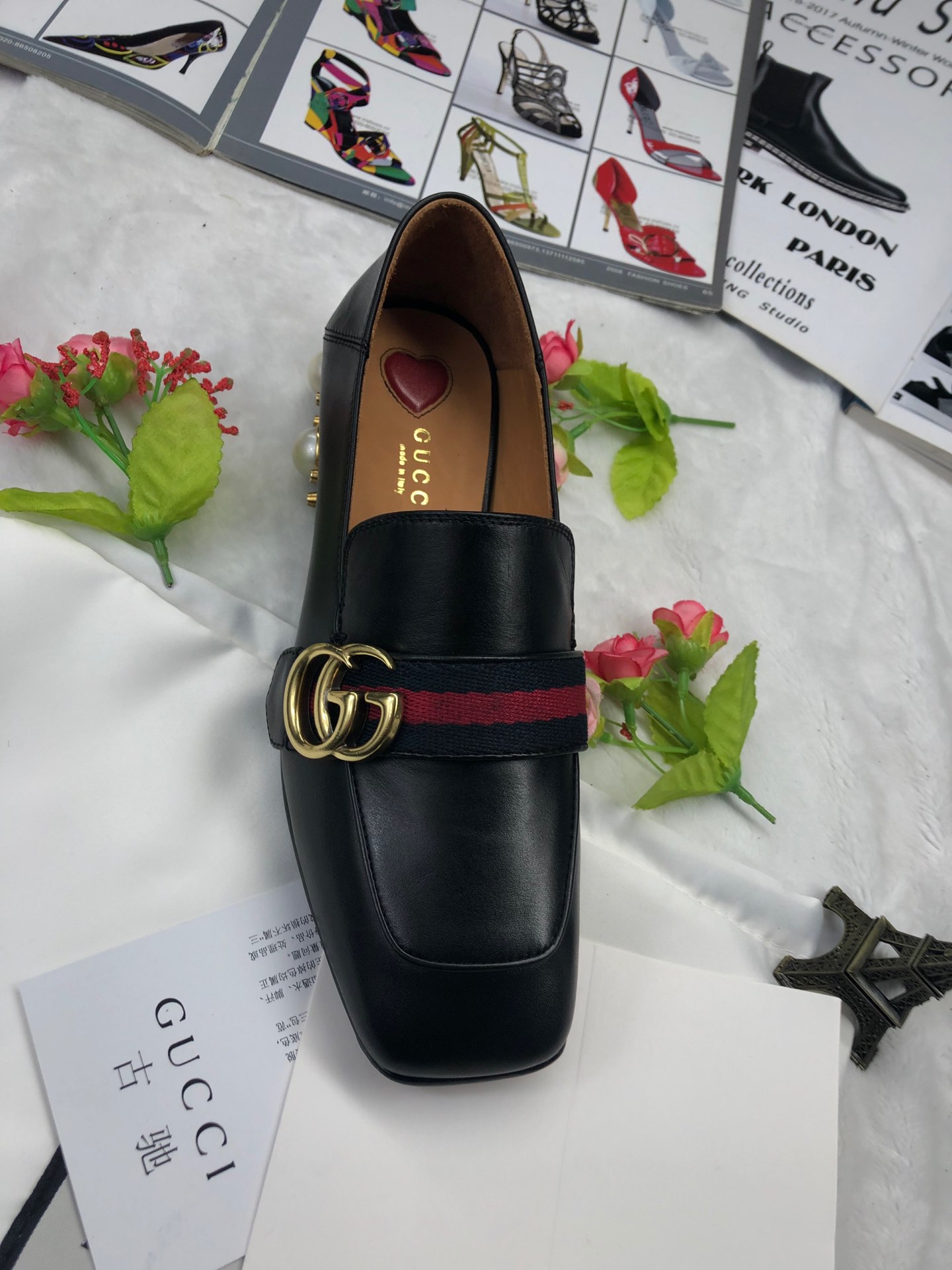 Gucci Retro square toe design calfskin shoes