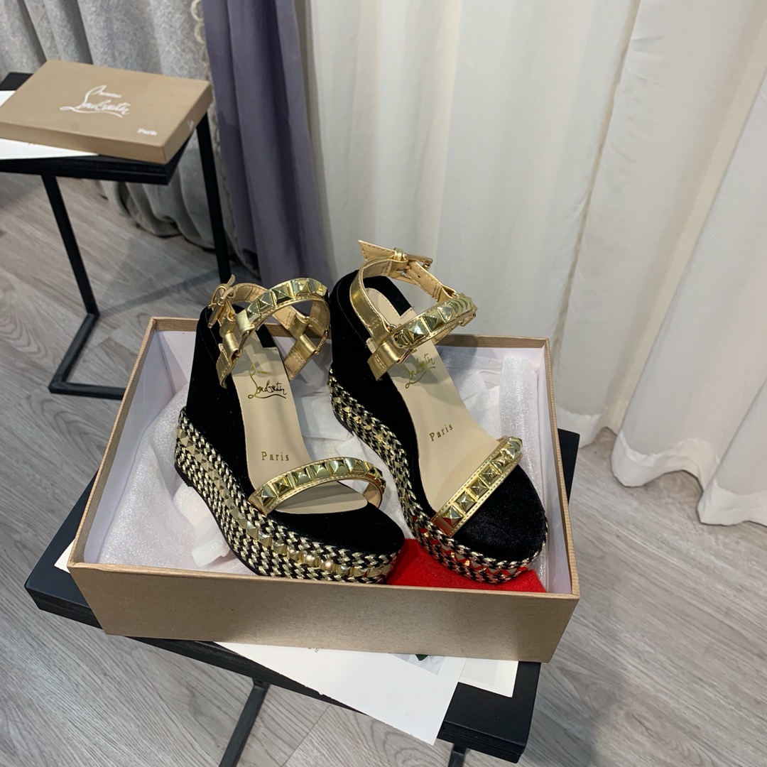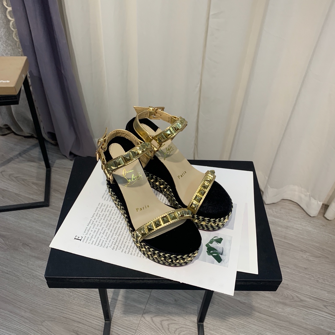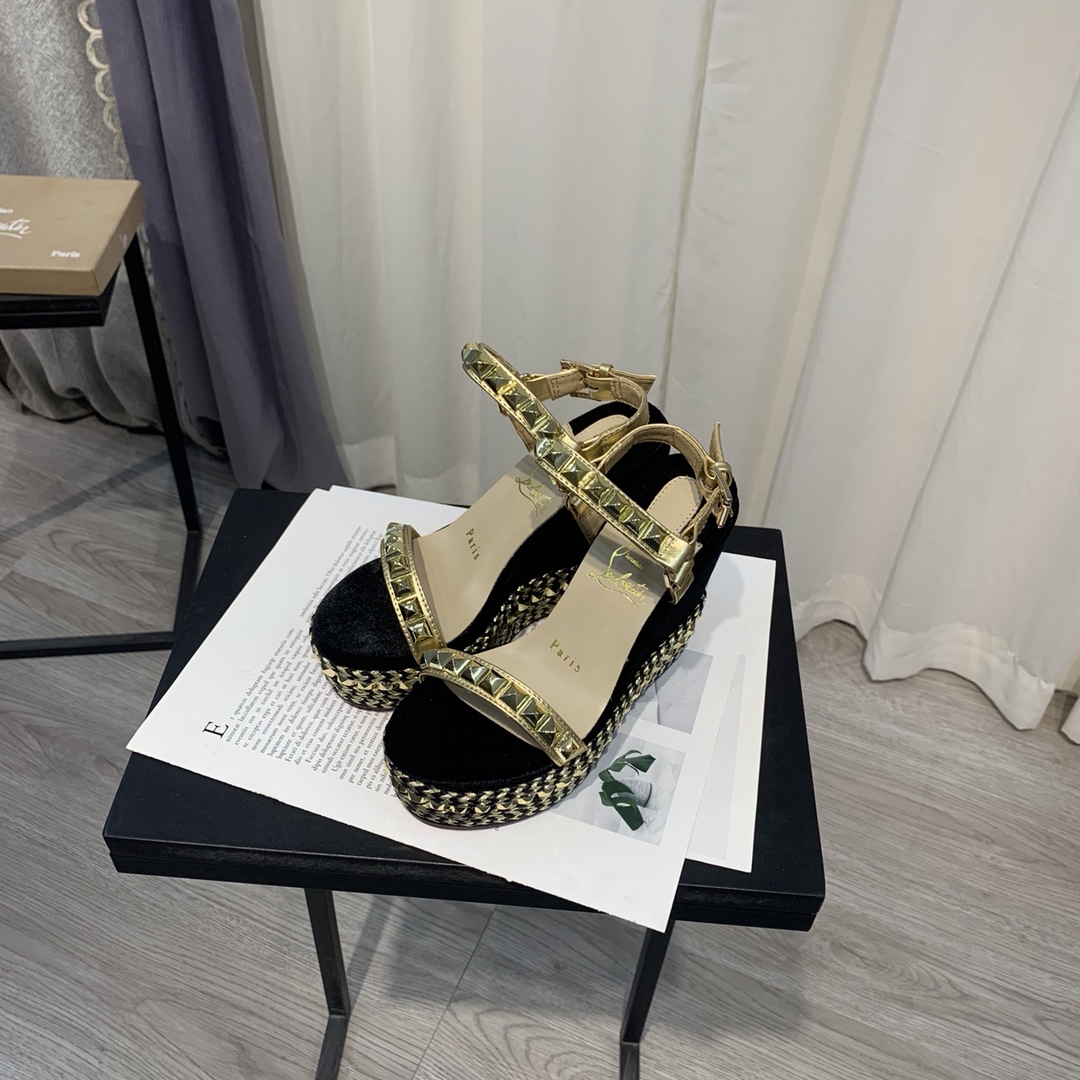 Red-soled leather sandals are sold out. The vamp rivets are hand-made and the heel is 12cm high. Four colors are available. Sheepskin feet are very comfortable. Women s size 34-39 (customized size 40)