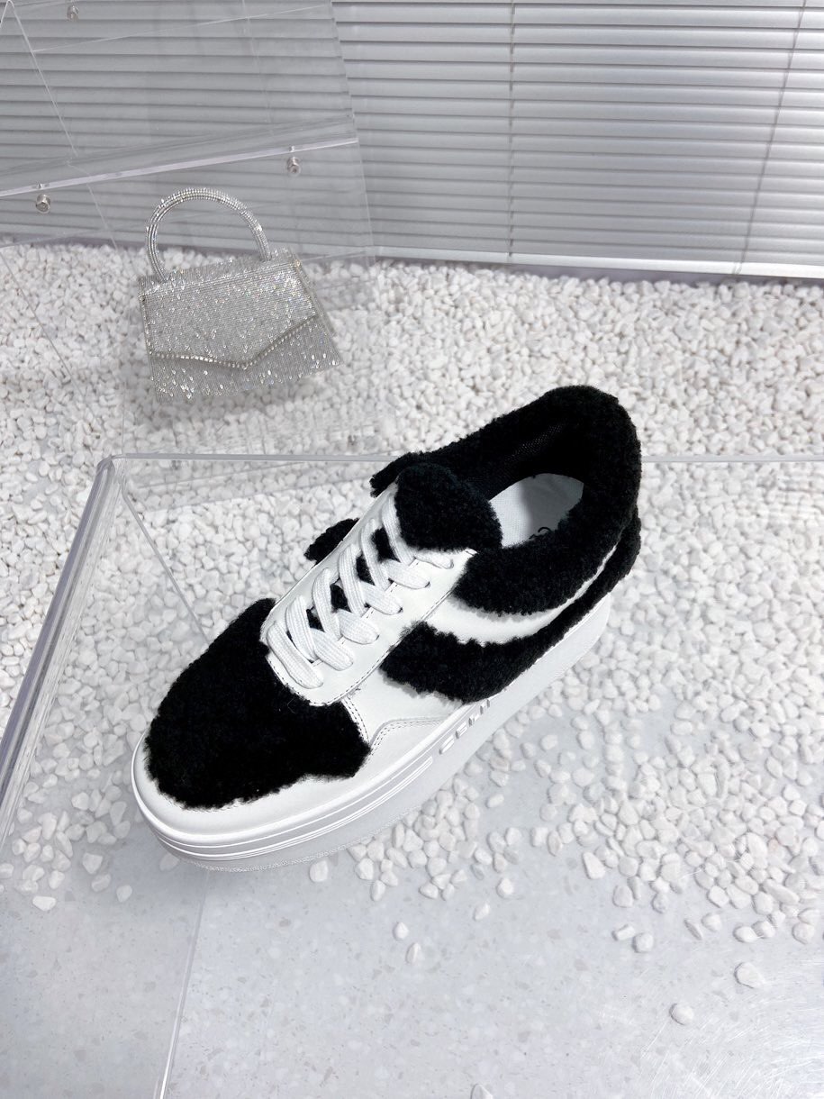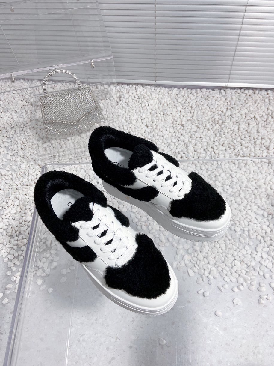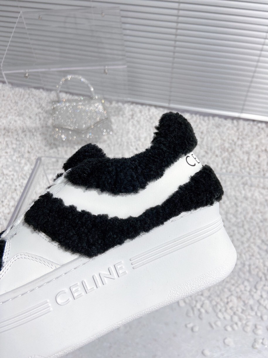 Celine Thick sole fur white casual shoes