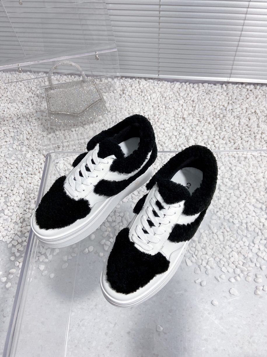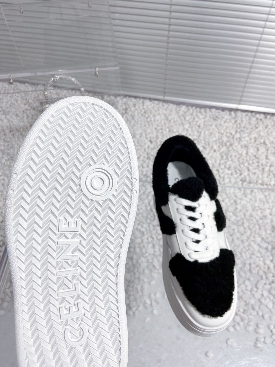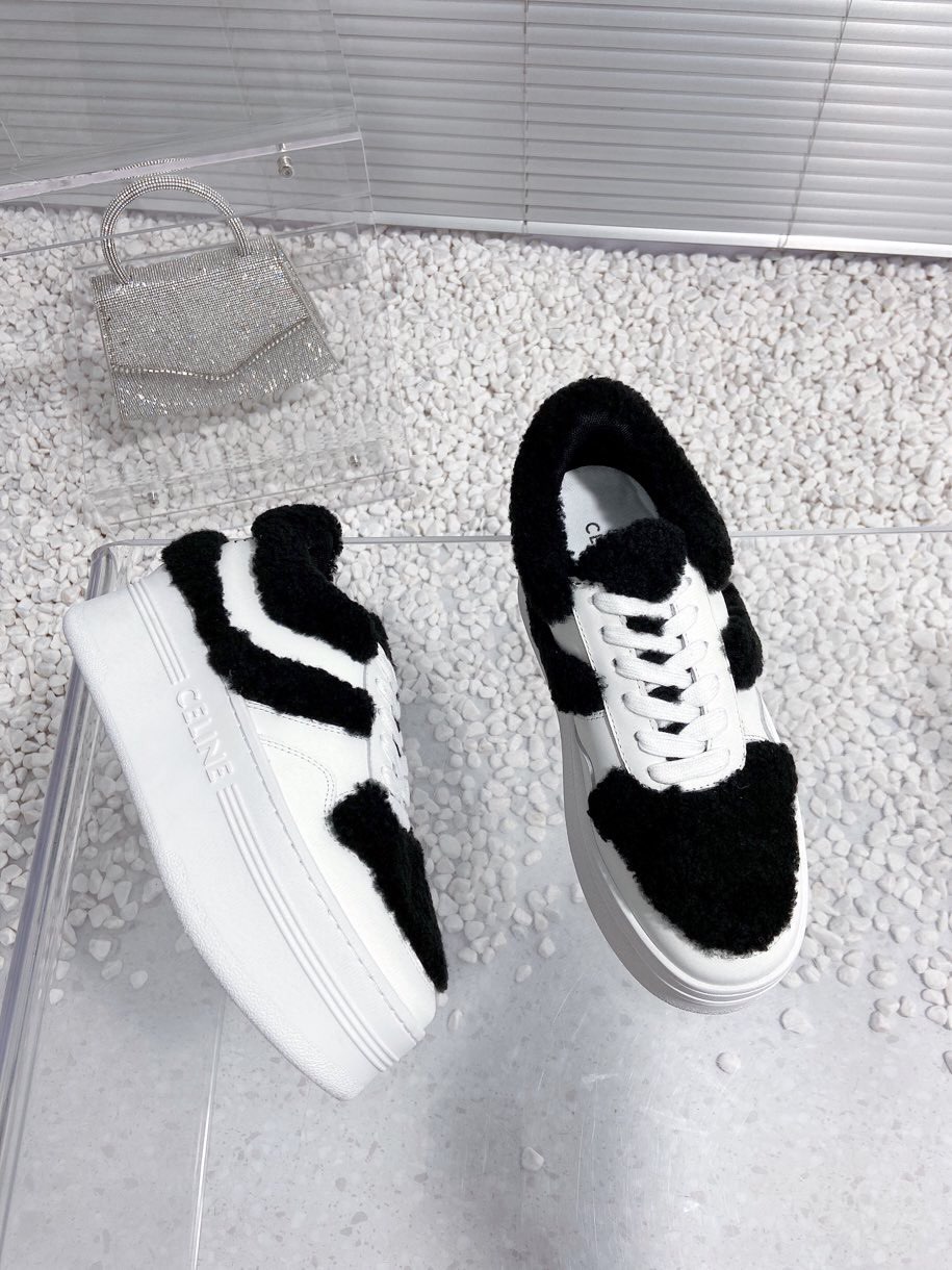 Celine Thick sole fur white casual shoes