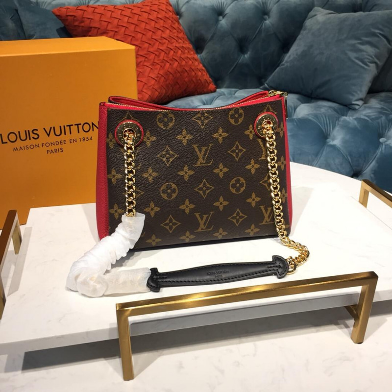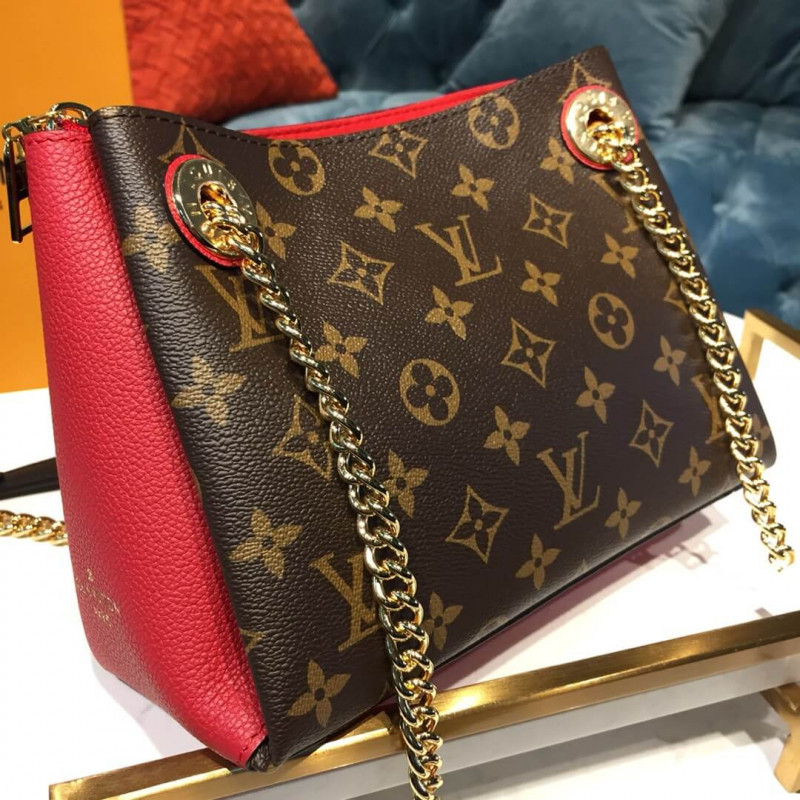 The Surene BB handbag in Monogram canvas and grained calf leather with a gold-color sliding chain is Louis Vuitton’s new chain bag. Its sleek shape is enlivened with gold-color hardware and the generous use of leather trim. The perfect casual-chic bag, it is lightweight, versatile, body-friendly and easy to wear.