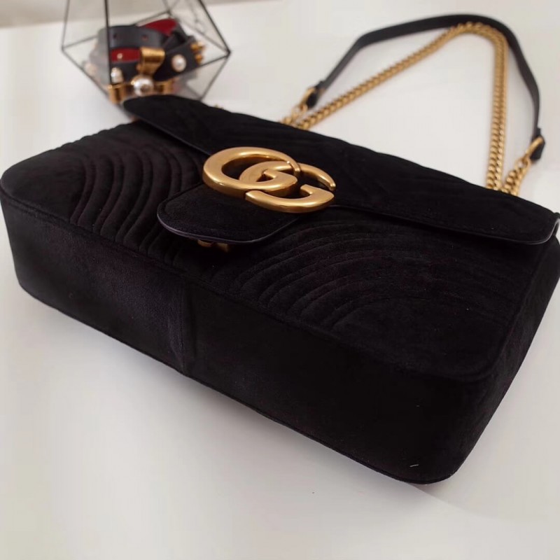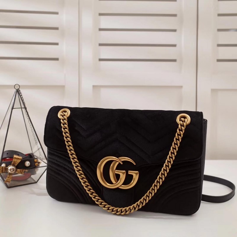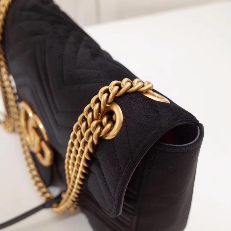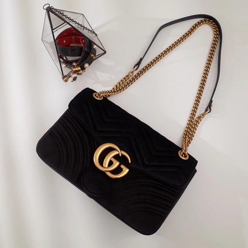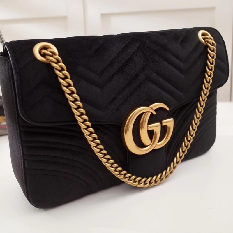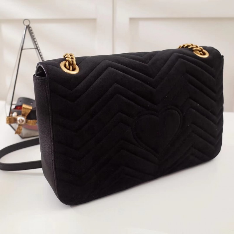 The medium GG Marmont chain shoulder bag has a softly structured shape and an oversized flap closure with Double G hardware. The sliding chain strap can be worn multiple ways, changing between a shoulder and a top handle bag. Made in matelassé chevron leather with a heart on the back.
