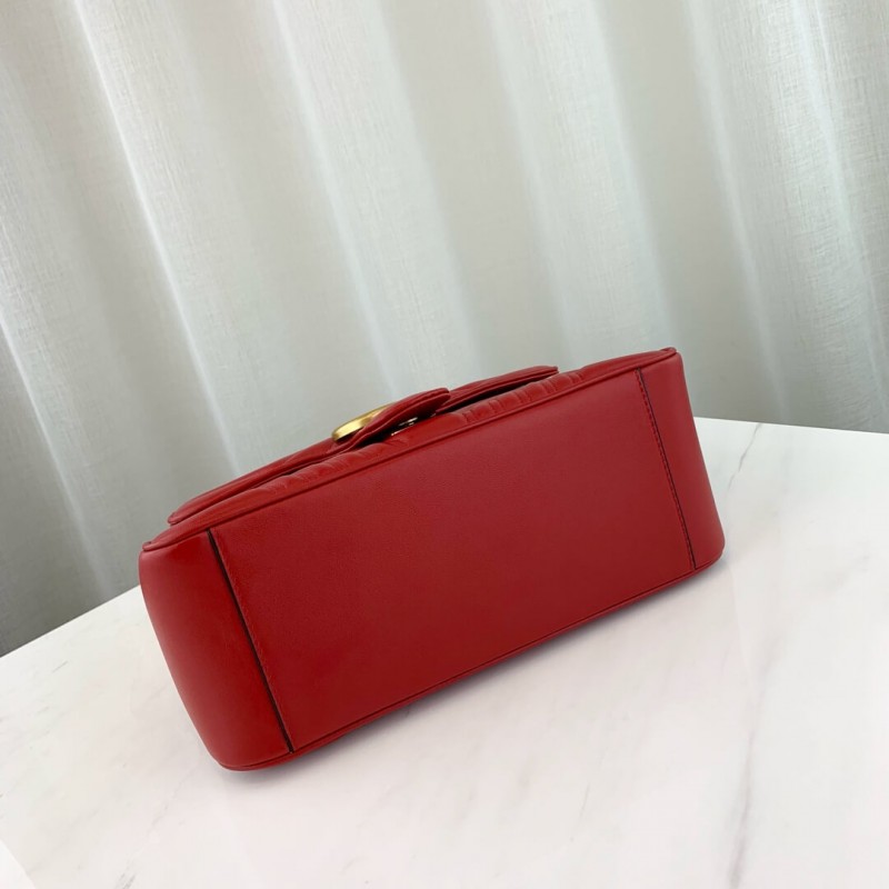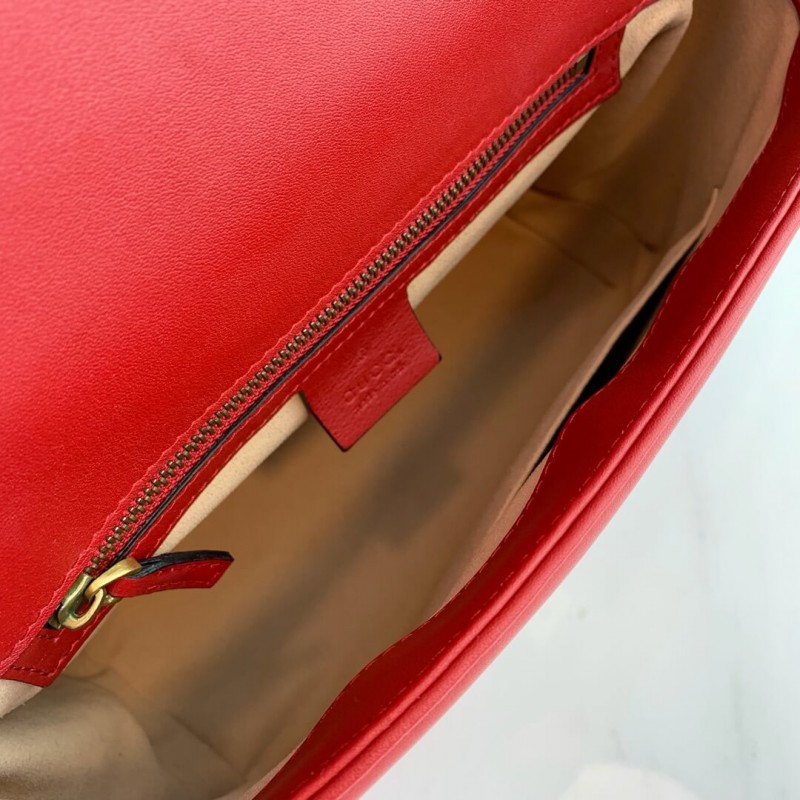 The small GG Marmont top handle bag has a softly structured shape and an oversized flap closure with Double G hardware. Made in matelassé chevron leather with a heart on the back.