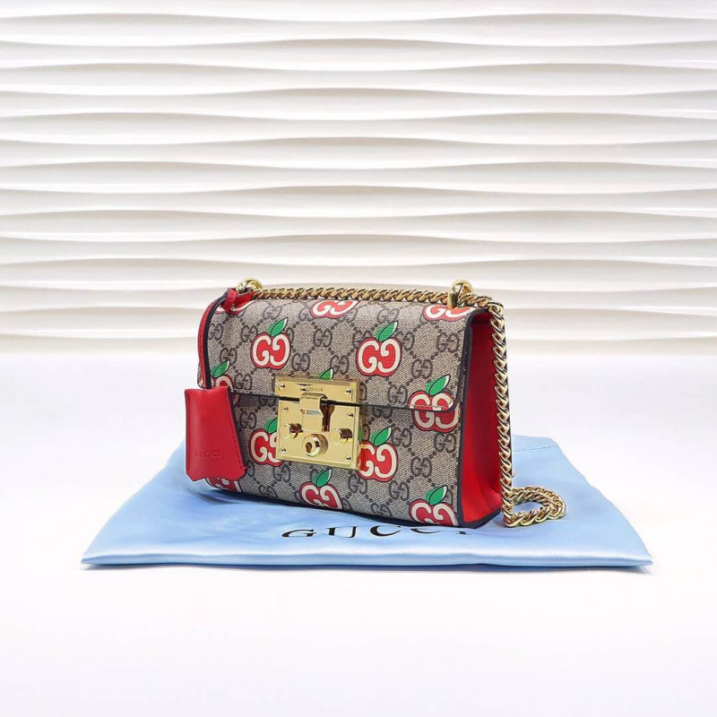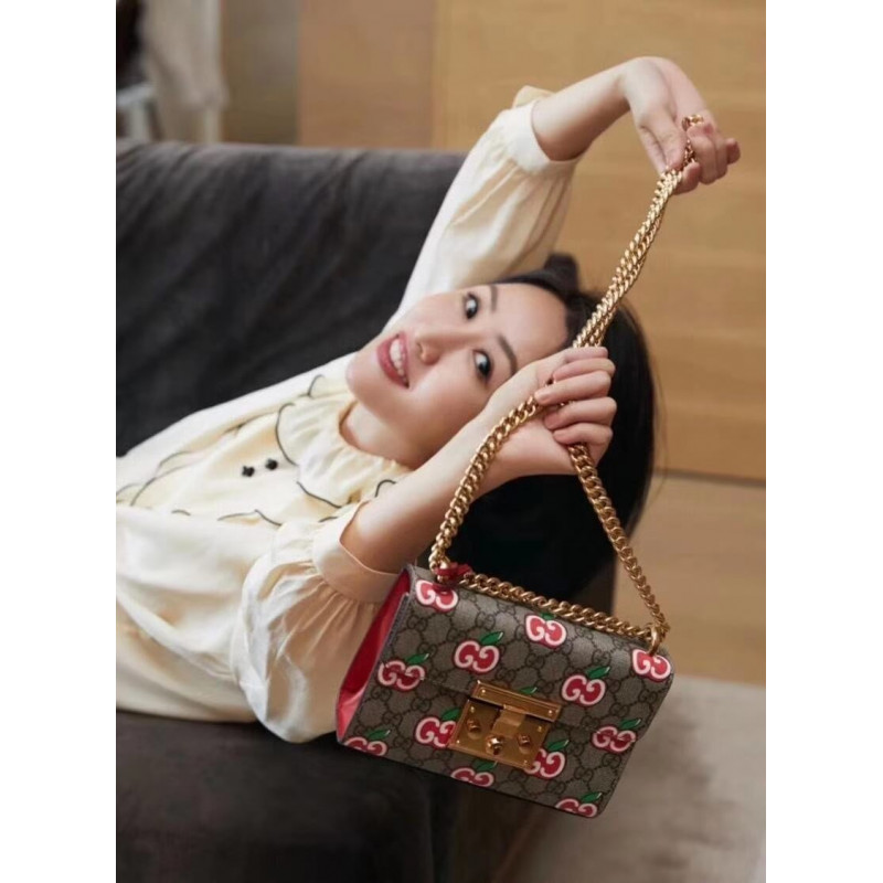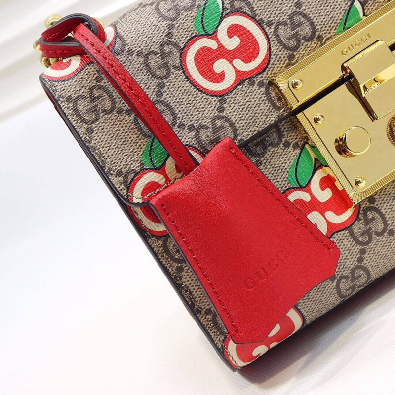 In celebration of Chinese Valentine’s Day, a special collection of styles features cartoon-style apples playfully set against the House’s monogram. The small structured shoulder bag is completed with the line s distinctive key lock closure.