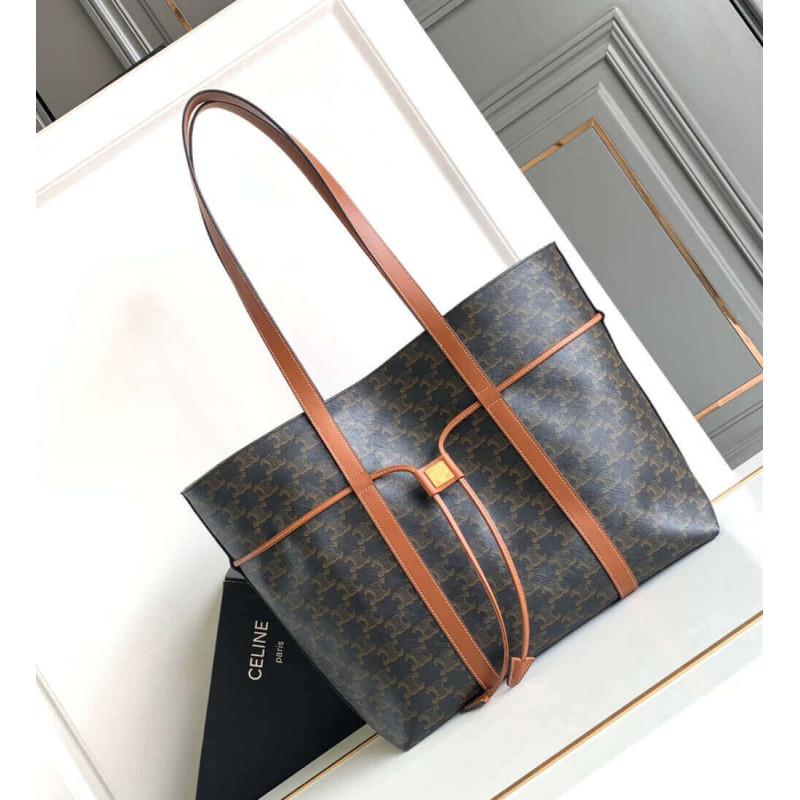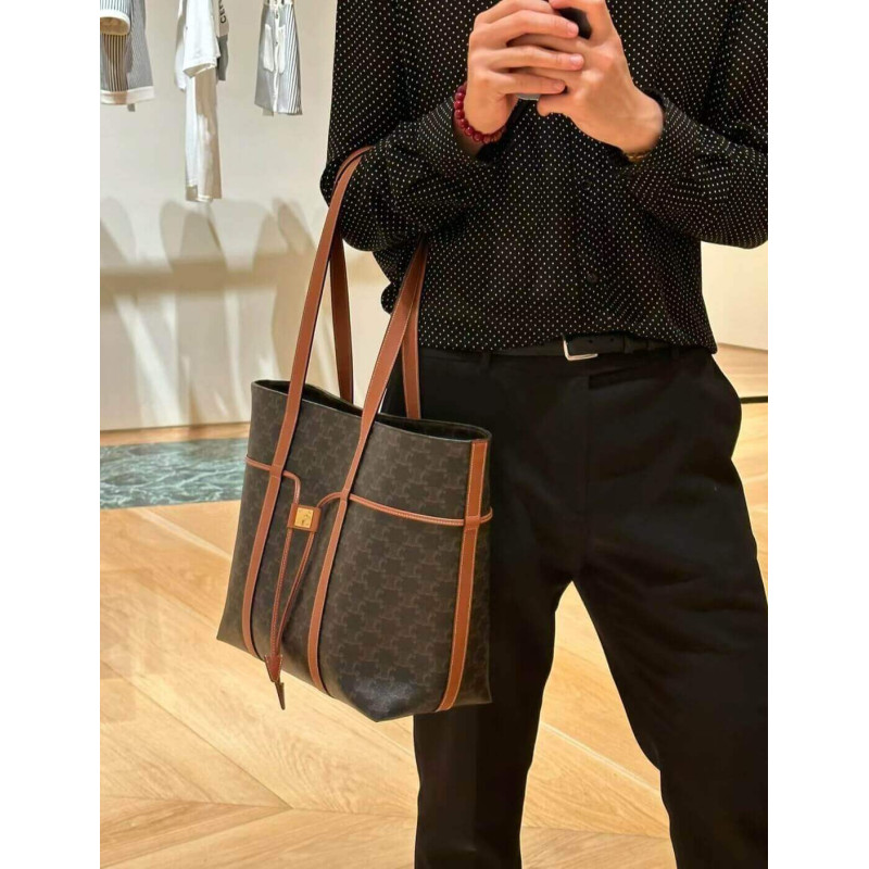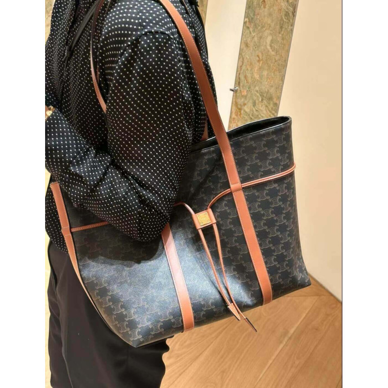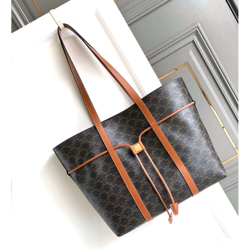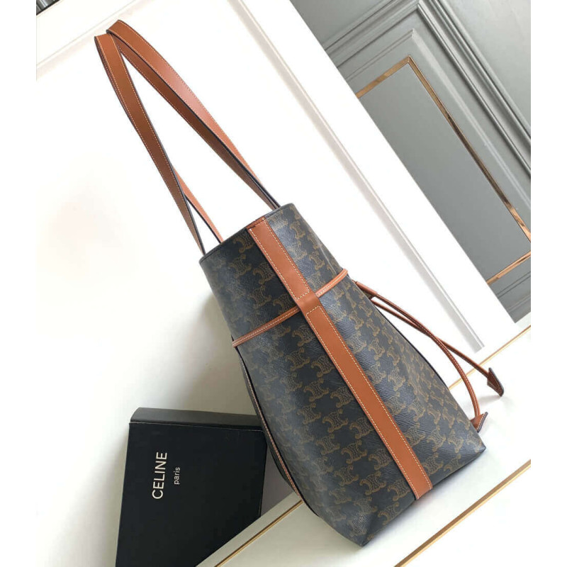 Celine Cabas Drawstring In Triomphe Canvas and Calfskin 113722