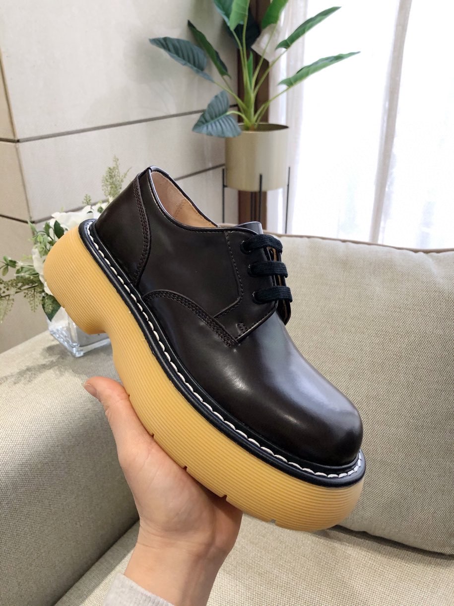 Bottega Thick-soled lace-up round-toe leather shoes/short boots Sole height: about 5.5cm